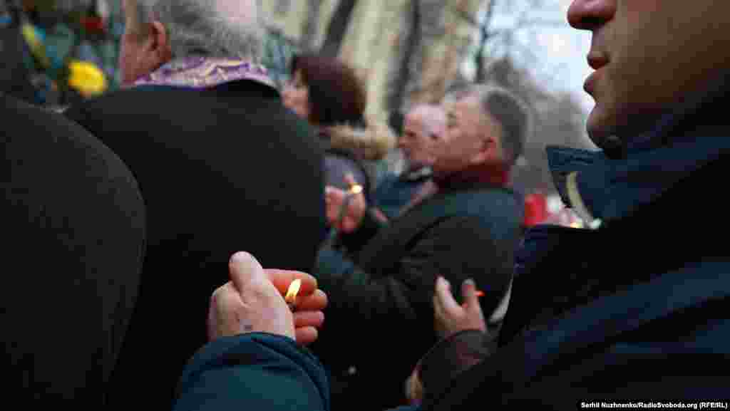 У Києві на Алеї Героїв Небесної сотні зранку 18 лютого відбувся молебень пам’яті загиблих учасників Революції гідності. У заході взяли участь понад 100 людей.