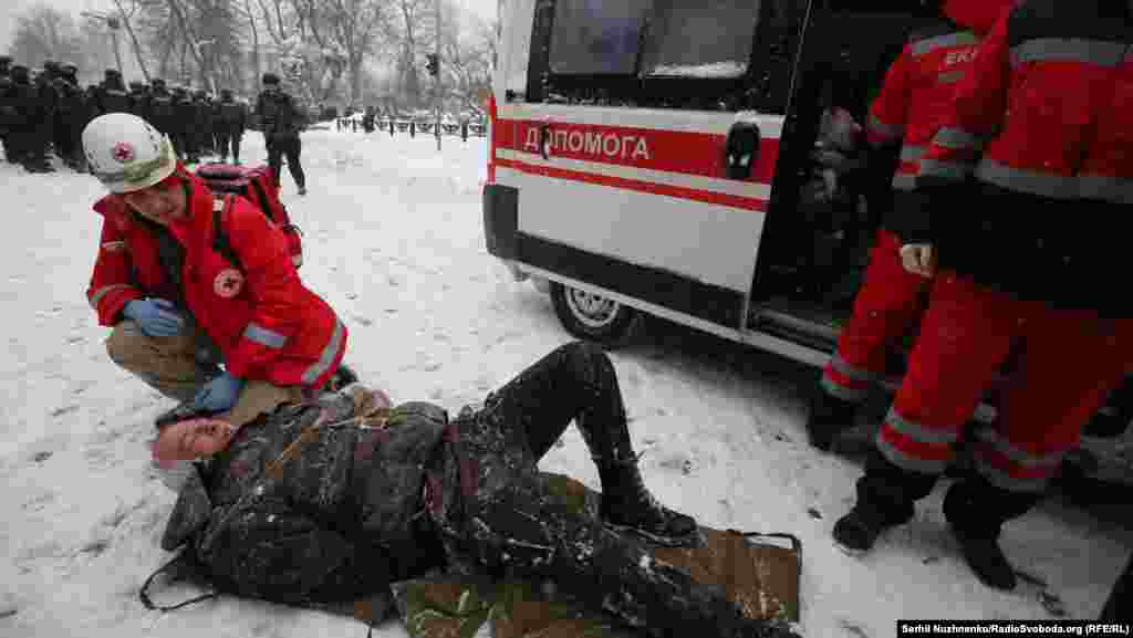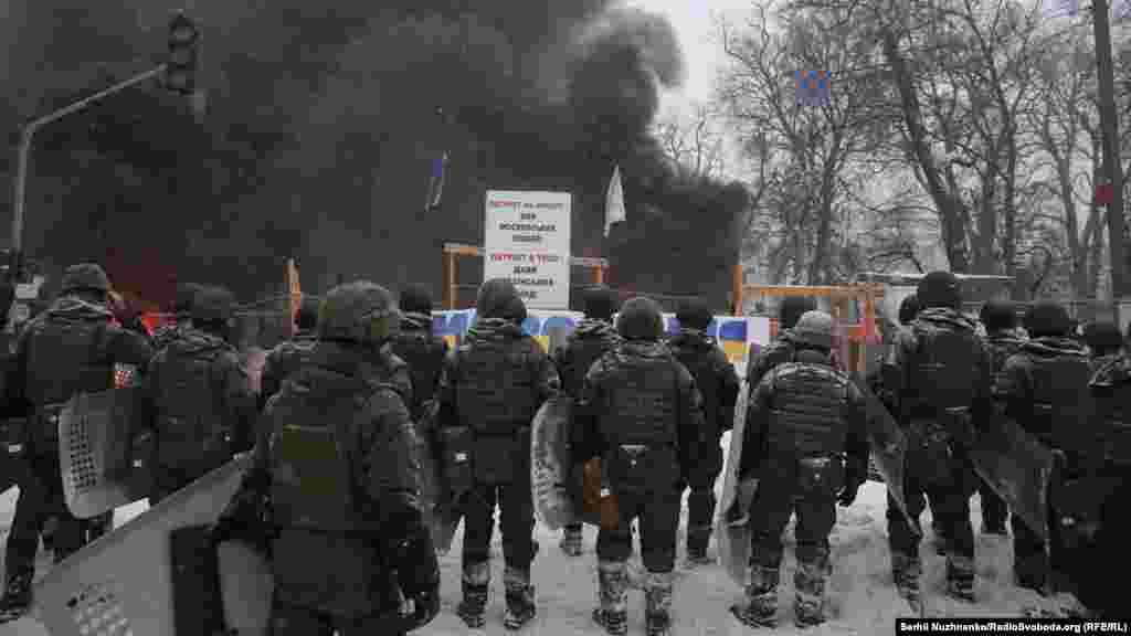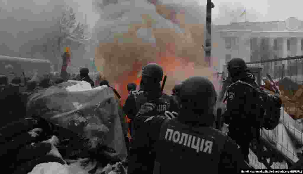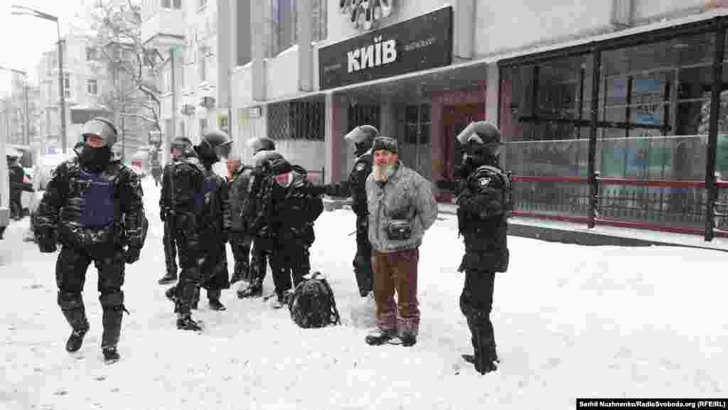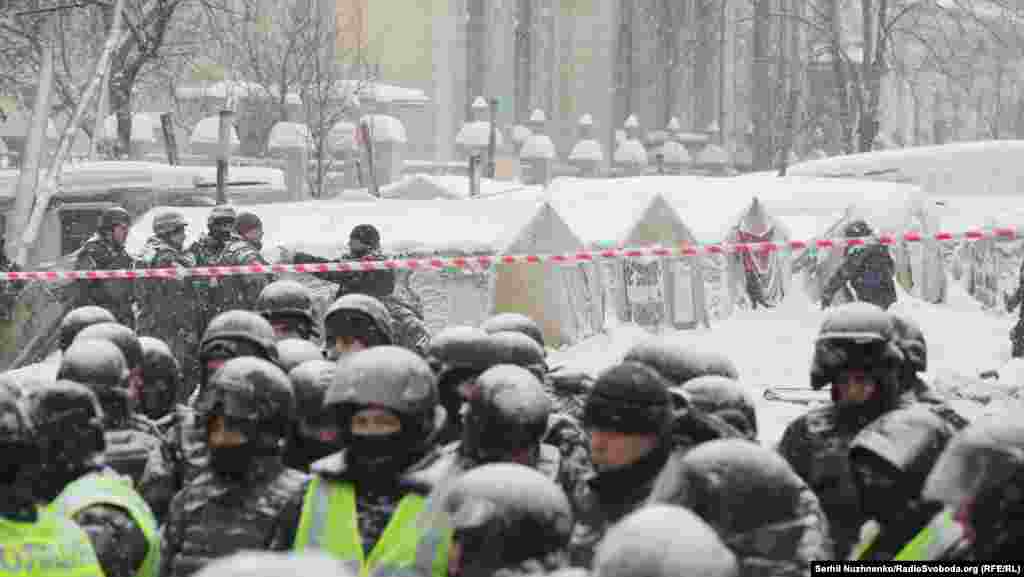 Поліція доставила до відділків понад сотню людей під час «слідчих дій» біля будівлі Верховної Ради. У прес-службі Національної поліції повідомили, що операція правоохоронців проводилась у рамках кримінальних проваджень, одне з яких відкрито за фактом спроби захоплення Міжнародного центру культури і мистецтв (Жовтневого палацу), а інше стосується подій біля стін Верховної Ради, які відбулися 27 лютого. Окрім того, як повідомлялось, зараз розпочато кримінальне провадження за статтею 345 Кримінального кодексу України («погроза або насильство щодо працівника правоохоронного органу»). У поліції заявили, що під час проведення слідчих дій на території наметового містечка біля Верховної Ради правоохоронці вилучили дев’ять гранат РГД-5, запали, «коктейлі Молотова» та п’ять димових мін.