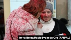 Окрім того, в Ужгороді на мітингувальниць напали і облили червоною фарбою.