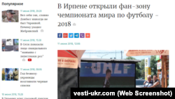 Цими днями деякі видання вийшли із заголовками про те, що в українському місті Ірпені під Києвом начебто встановили фан-зону чемпіонату світу-2018 із футболу, що має відбутися в Росії – країні-агресорі щодо України. Про це начебто свідчить фото із встановленим екраном біля одного із місцевих торговельно-розважальних центрів. Але, як повідомили в адміністрації ТРЦ, екран встановили з рекламною метою.
