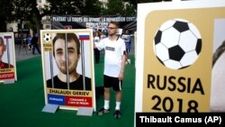 Активісти кампанії за свободу преси 13 червня створили імпровізований футбольний газон в центрі Парижа і розмістили на ньому постери з зображеннями ув’язнених російських журналістів.