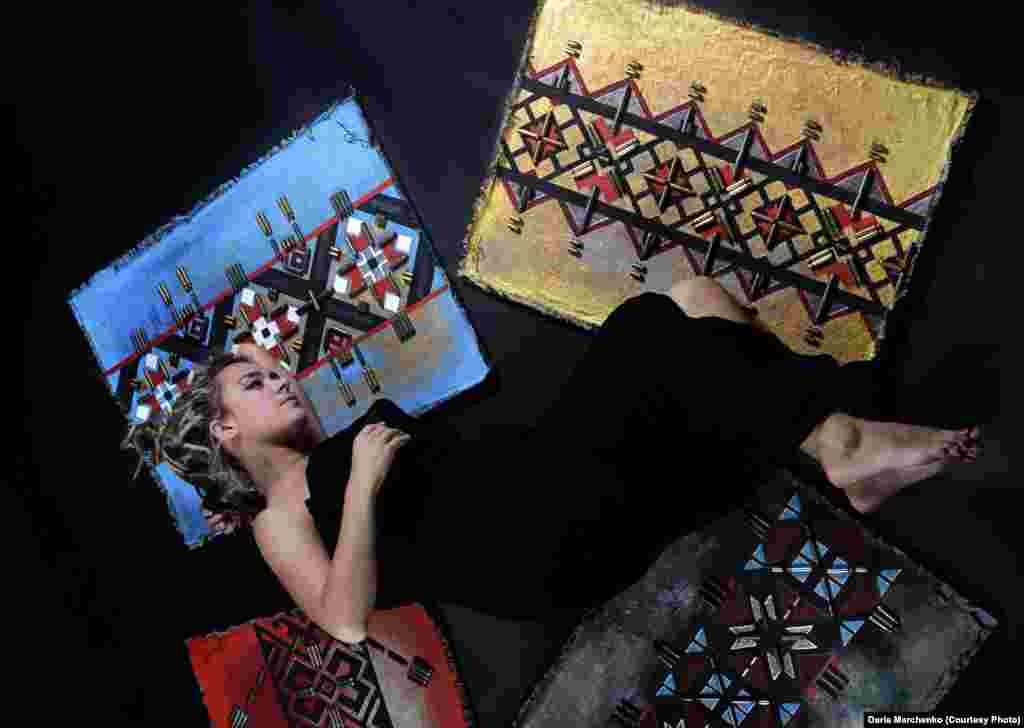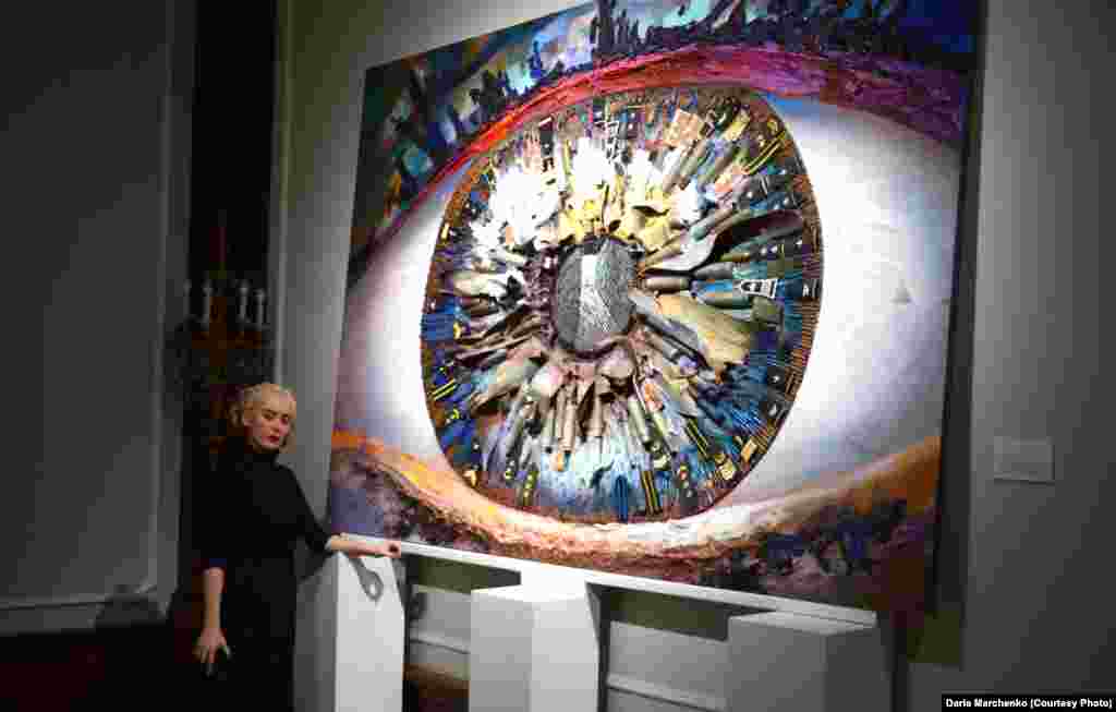 Дарія Марченко і Даніель Грін на тлі своїх робіт