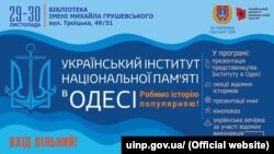 Дводенну програму готували як київські, так і одеські фахівці. В Одесі представлять напрацювання інституту за останні роки, презентують кілька книжок, покажуть фільм про російсько-українську війну та влаштують вечірку.
