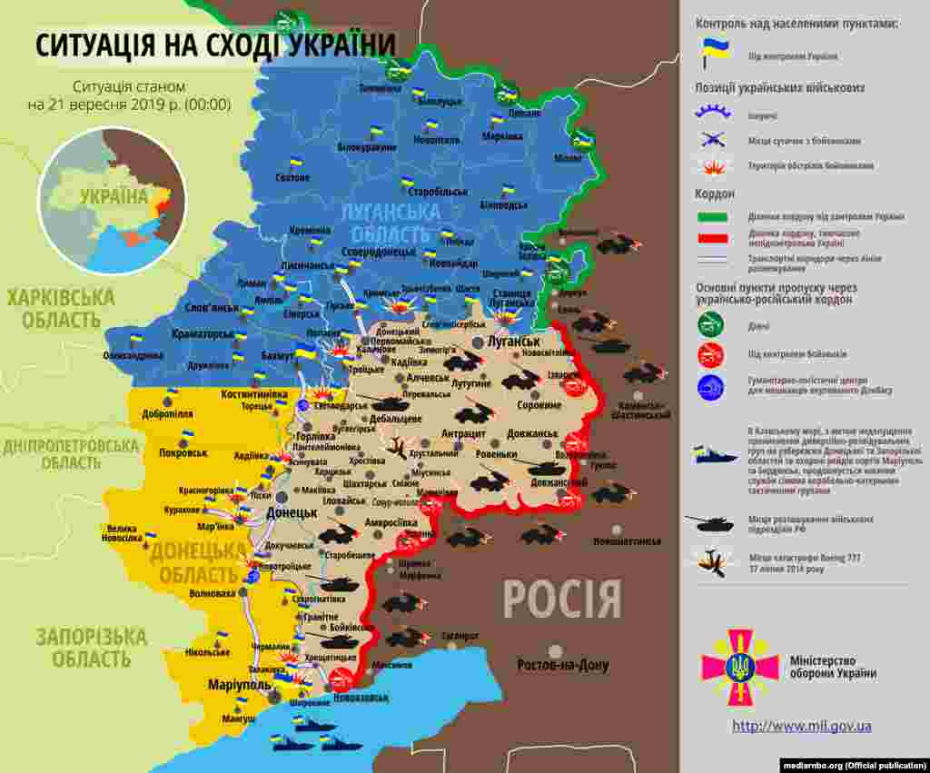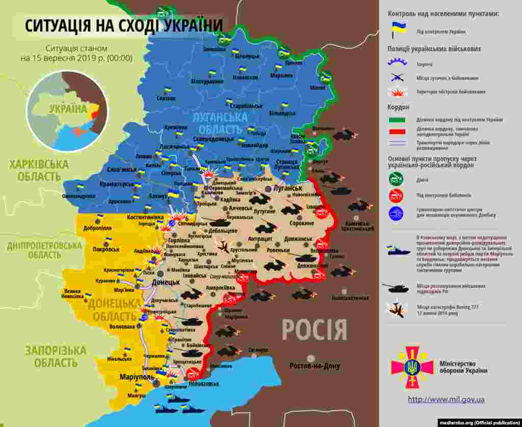 Розвиток ситуації в зоні бойових дій на Донбасі, починаючи із 1 вересня 2019 року. Інфографіка Міністерства оборони України
