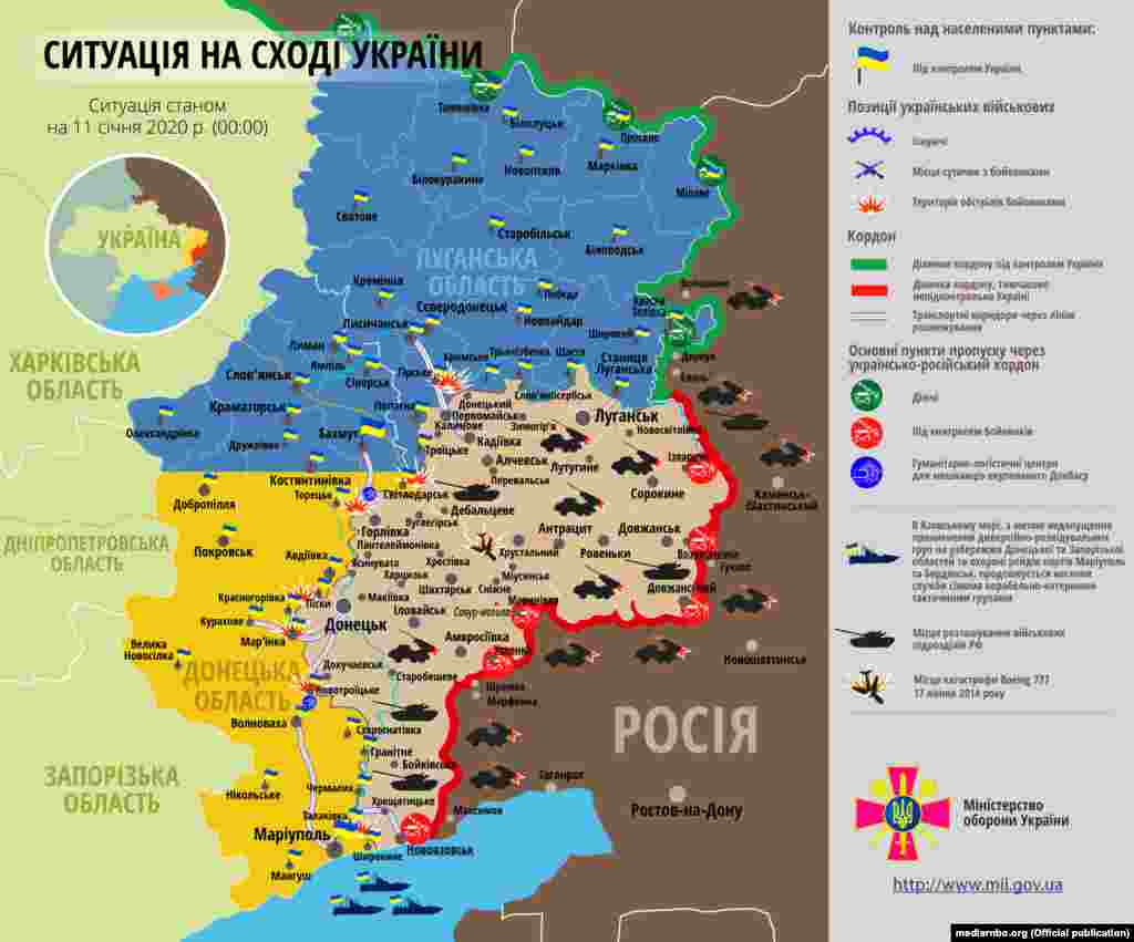 Розвиток ситуації в зоні бойових дій на Донбасі, починаючи із 2 грудня 2019 року. Інфографіка Міністерства оборони України