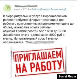 Уборщицам в магазине или на фирме в ОРДЛО предлагают от 8 до 12 тысяч (2399 – 4407 грн.). За эти же деньги можно работать флористом-веночником в бюро ритуальных услуг, оператором кол-центра или швеей.