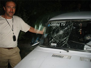 Бахчисарай, 12 серпня 2006 р.| Від каміння російських націоналістів постраждали два десятки автомобілів, у тому числі народного депутата Мустафи Джемілєва і журналістів кримськотатарського телебачення, Бахчисарай, 12 серпня 2006 р. |