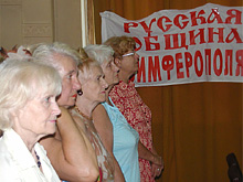 Надія Миколаївна, активістка із Севастополя, підтримує Сергія Шувайникова і каже, що їй, як росіянці, дуже важко живеться: «Вважаю, що ми сьогодні як у гостях в Україні. Нас не визнають як росіян. Ми не зрозуміло хто тут! Тому ми зібралися для того, щоб нас прийняли як росіян. Ми боротимемося!».