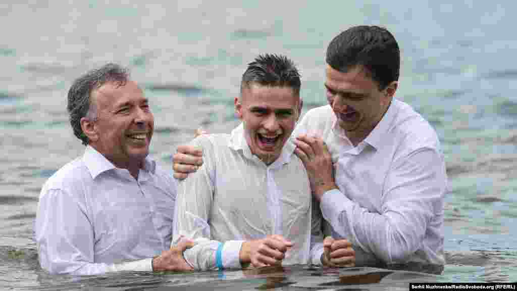 До води першими заходять пастори, а далі ті, кого хреститимуть