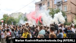 Акцію на підтримку протестів у Білорусі провели біля білоруського посольства в Києві