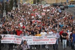 У Мінську кілька тисяч протестувальників, зокрема і робітників Мінського тракторного заводу, пройшли маршем до центру міста і дійшли до будівлі уряду на площі Незалежності. Вони скандують «виходь» і вимагають діалогу з владою.
