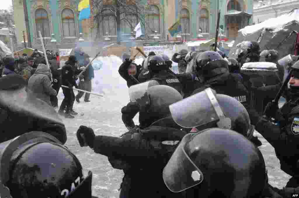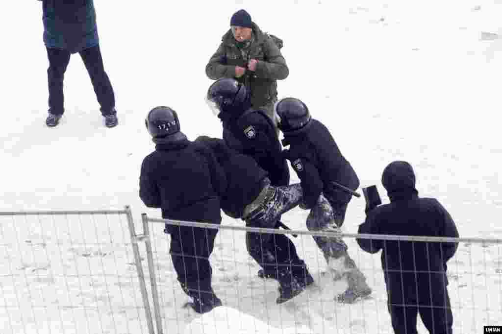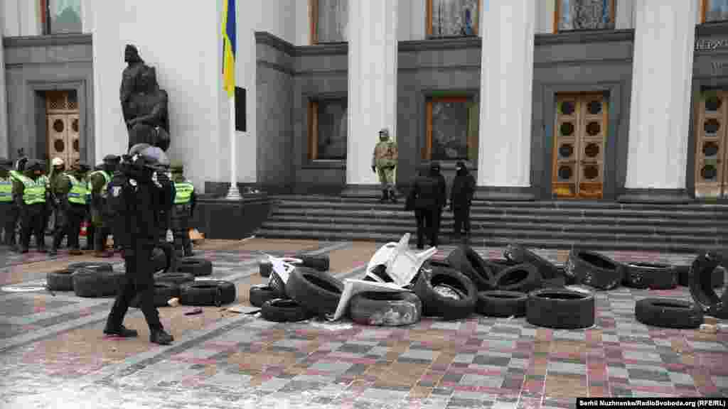 Під час ранкового мітингу під Верховною Радою мітингувальники принесли під стіни будівлі шини і хотіли їх підпалити. Працівники поліції намагалися завадити цьому, внаслідок чого сталася сутичка, під час якої постраждали 14 поліцейських. Затримано 9 мітингувальників. Поліція відкрила кримінальне провадження за статтею «Погроза або насильство щодо працівника правоохоронного органу».
