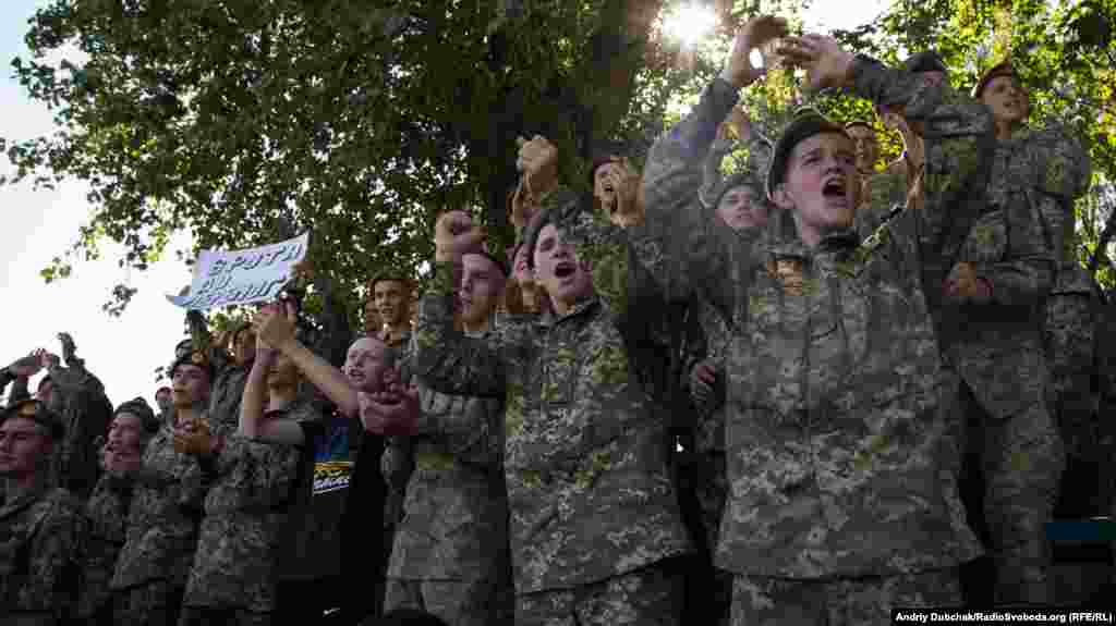 Ліцеїсти 6-ї роти вигукують кричалку: «Доки ми кричати зможем, 6-а рота переможе!»