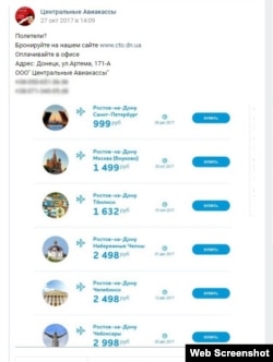 Этот российский город также связывают с авиабилетами. Ведь донецкие «Центральные авиакассы» продают дончанам билеты на авиарейсы в Москву, Санкт-Петербург, Екатеринбург, Чебоксары, Тбилиси, Баку, Сочи и Крым из аэропорта Ростова. И хотя на сайте компании упоминается про возможный вылет из Харькова, Днепропетровска и Киева, чтобы посетить Германию, Турцию, Армению, Грузию, Беларусь, билет предлагают приобрести российских авиалиний с вылетом из Ростова или Москвы.