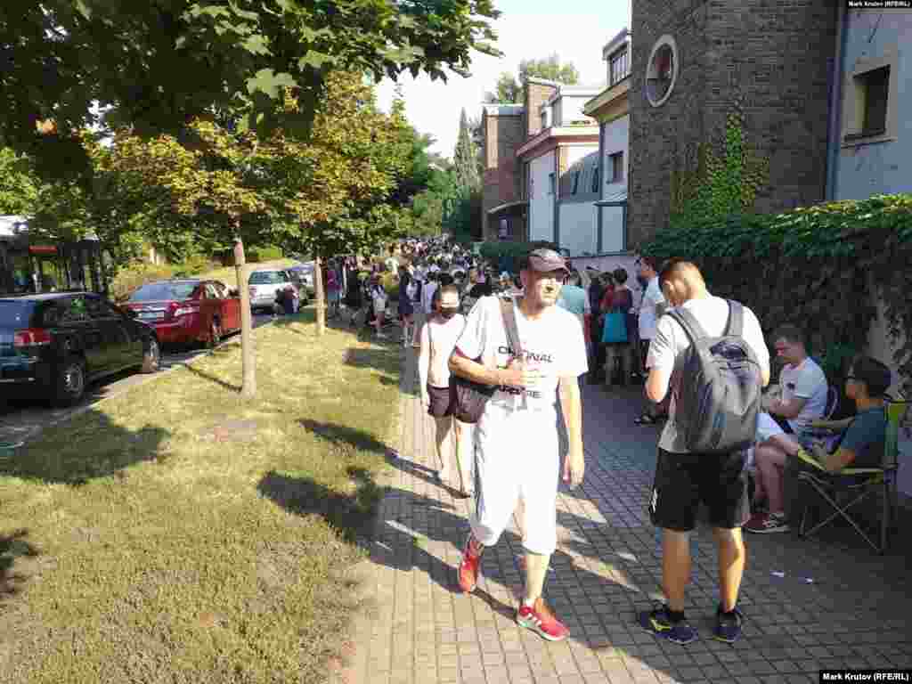 Черга біля білоруського посольства у Москві, де розташована виборча дільниця