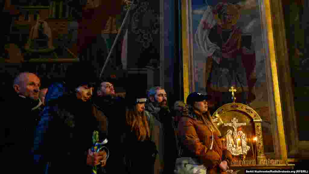 Прощання у Михайлівському Золотоверхому соборі у Києві із старшим лейтенантом, командиром бойової снайперської групи розвідки ОЗСП «Азов» НГУ Ігорем Линдюком