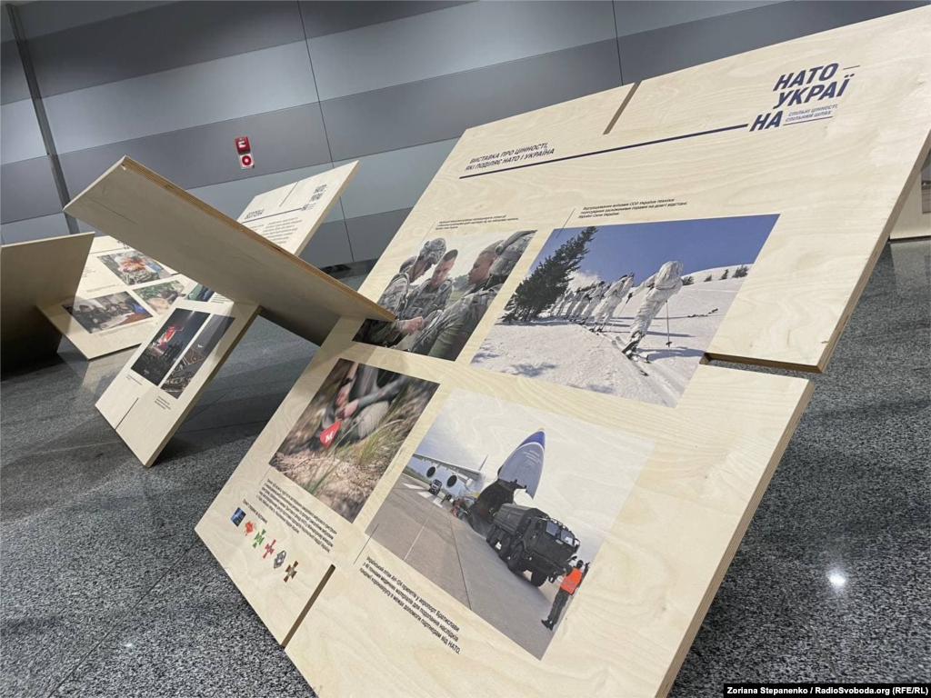 У Борисполі в терміналі Д відкрилася виставка, присвячена співпраці України й Альянсу. Відтепер усі пасажири, що очікують на свій літак у зоні вильоту, зможуть побачити унікальні знімки. На них зафіксовано, як Україна впроваджує стандарти НАТО.