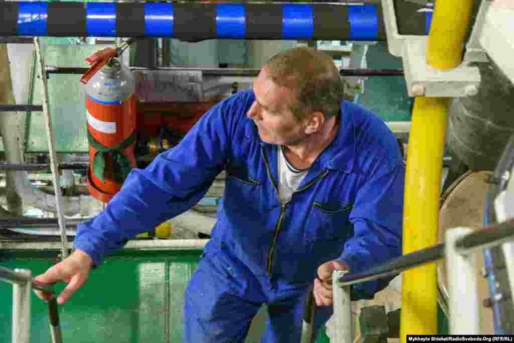 Пуск двигунів судна – тут їх два. Один дизель-електричний, другий, допоміжний, – виключно електричний. На допоміжному двигуні судно може рухатись зі швидкістю до 5 вузлів, на основному – до 12