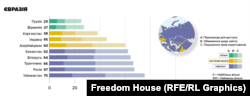 Freedom House складає рейтинг свободи інтернету з трьох покажчиків: «обмеження доступу до інтернету», за яким країна може максимально набрати 25 балів, «обмеження контенту», де можливий максимум 35 балів, та «порушення прав користувачів» із найкращим результатом у 40 балів. Загалом країна може набрати 100 (що більше – то краще), в України ж поки – 45 балів.