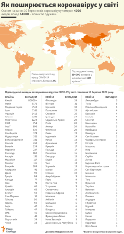 Як поширюється коронавірус у світі (станом на 10 березня 2020 року) – інфографіка