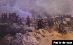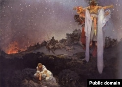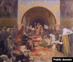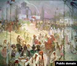 Радіо Свобода пропонує короткий опис того, що зображає кожне з полотен серії Альфонса Мухи «Слов’янська епопея».