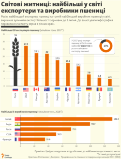 Світові житниці: найбільші у світі експортери та виробники пшениці – інфографіка