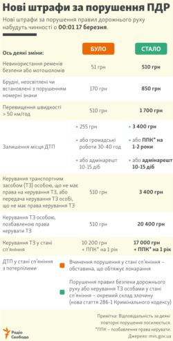 Нові штрафи за порушення ПДР (інфографіка)