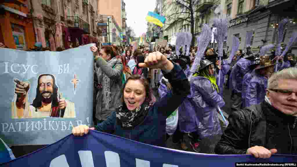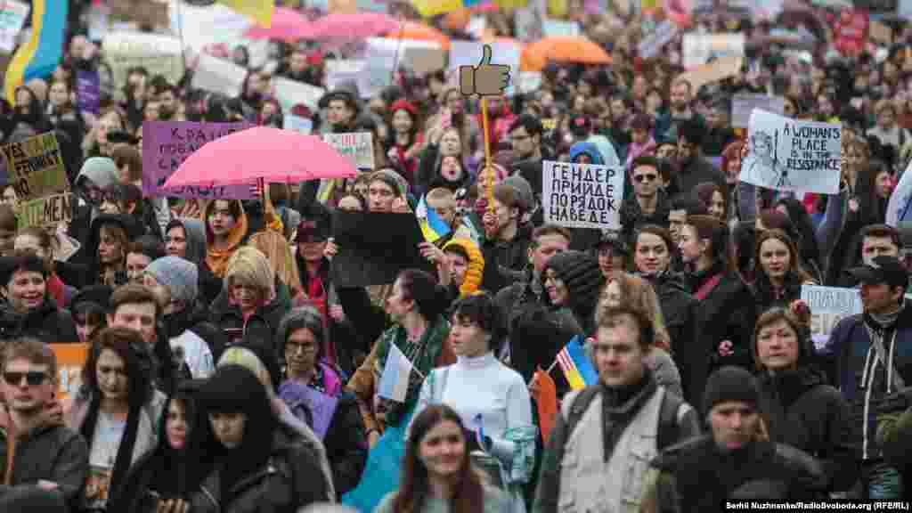 У центрі Києва 8 березня відбулася акція «Марш жінок», учасники якої вимагали від депутатів ратифікувати Стамбульську конвенцію і виступали за ґендерну рівність у суспільстві. Демонстранти зібралися на Михайлівській площі і пройшли ходою до Поштової площі.
