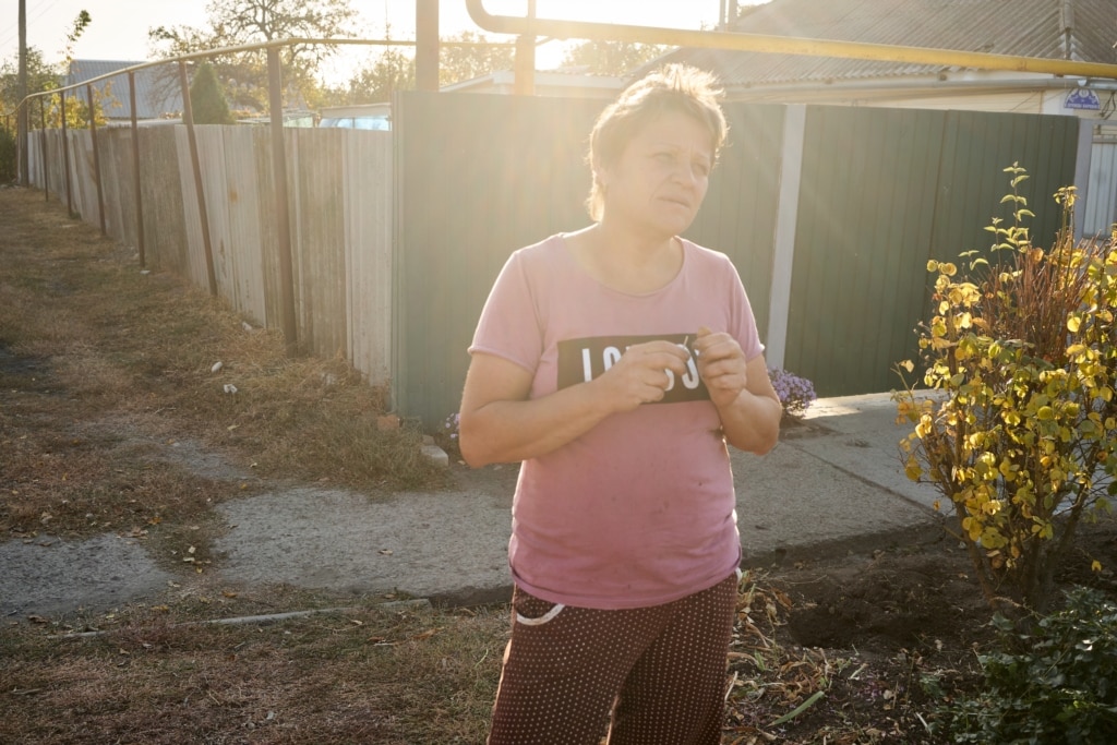«Вранці як прокинулись, дивимось – а вже дірки під стовпи стоять, потім вже дні через три дивимось – а в нас паркан стоїть, – 23–річна Ганна Калюжна пригадує осінь 2018–го року, коли Росія поставила посеред вулиці триметрову «сітку» з колючим дротом. – Сину півтора роки було. Він бігав на інший бік вулиці раніше, поки машин не було. Так він прокидається і каже – мамо, а як же я бігатиму?»