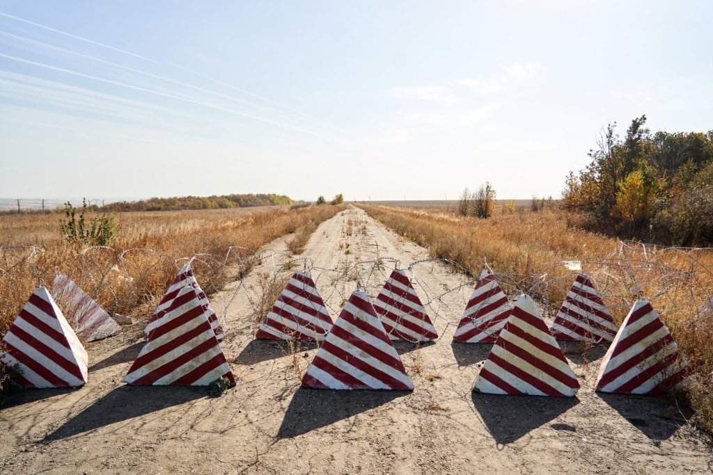 Праворуч – покинута російська залізниця, ліворуч – українські поля. Ми їдемо до Зоринівки – села, яке українсько-російський поділ кордону практично вбив. На півшляху до села ми різко звертаємо на ґрунтовку – на асфальтовому полотні перед нами раптово виростають протитанкові їжаки. Зусібіч нас оточують свіжі таблички усіх можливих кольорів та розмірів, що кричать про російсько-український кордон.
