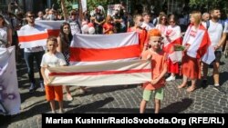 У центрі Києва 16 серпня пройшла хода на підтримку учасників антивладних протестів у білорусі.