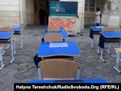 Як передає кореспондент Радіо Свобода, біля міської Ратуші учасники акції поставили шкільні парти, за якими ніхто не сидів.