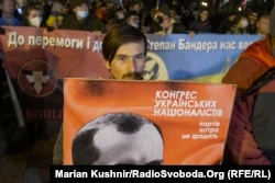У п’ятницю ввечері кілька сотень людей пройшлися центром Києва з нагоди 112-ї річниці від дня народження лідера Організації українських націоналістів Степана Бандери.