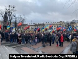 Як передає кореспондент Радіо Свобода, учасники традиційної смолоскипової ходи рушили від парку Тараса Шевченка задля проведення на майдані Незалежності традиційного віче.