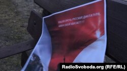 Зокрема, листівки з написами «Агресор нам не брат – помирати за тебе не будемо» і «Пішла геть, російська диктатура» розклеїли у містах Пінськ, Мозир і Гомель.