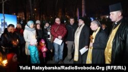 Учасники акції – громадські активісти, волонтери, священики, рідні загиблих на Донбасі бійців – засвітили лампадки та свічки.