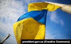 За словами Зеленського, у Києві сьогодні піднімають особливий прапор України.