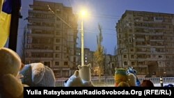 Зараз спалені іграшки зібрали у сміттєві пакети, вцілілі – залишили. Там також з’явився синьо-жовтий прапор, передає кореспондент Радіо Свобода.