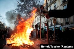 Як повідомляє AFP з посиланням на поліцію, в Парижі зчинилось кілька пожеж, горіли машини, кіоск і пивний ресторан. У поліції зазначили, що протестувальники не дозволили пожежним гасити пожежу. Затримано дев’ять осіб.