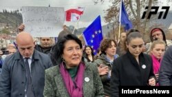 На площі Європи до маршу приєдналася президентка Грузії Саломе Зурабішвілі.