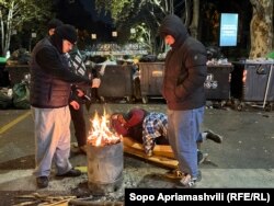 Увечері 17 листопада після мітингу протестувальники встановили близько 30 наметів біля Тбіліського державного університету. Учасникам акції роздали пледи, килимки та гарячий чай, привезли біотуалети. Ніч минула спокійно: опозиціонерів не розігнали, зараз вони спілкуються, дивляться фільми та танцюють. Влада та поліція жодних заяв поки не робили.
