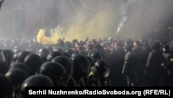 У Києві біля будівлі адміністрації президента України сталися сутички між представниками праворадикальної організації «Національний корпус» та правоохоронцями.