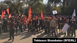 Кілька політичних партій проводять акції протесту в столиці Киргизстану Бішкеку, закликаючи до анулювання результатів парламентських виборів 4 жовтня, на яких перемогли партії, близько до проросійського президента країни Сооронбая Жеенбекова.