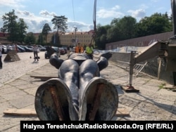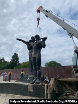 У Львові 23 липня демонтують головну частину композиції радянського монументу слави – дві бронзові фігури – батьківщини-матері та червоноармійця, який тримає меч, повідомляє кореспондент Радіо Свобода. На цей час уже зняли повністю скульптуру червоноармійця і розпочнуть знімати другу фігуру.