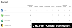 Зараз «Олександрія» й французький «Сент-Етьєн» мають по три очки, «Вольфсбург» – п’ять, а бельгійський «Гент» – вісім.