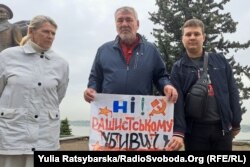 У Дніпрі, біля пам’ятника Василю Маргелову, 26 квітня відбулася акція «Окупанти – не герої». Її організувала громадська організація родин загиблих українських військовослужбовців «Родинне коло загиблих героїв».