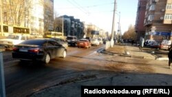 На вулиці Народного ополчення в напрямку Севастопольської площі провалилася частина дороги.