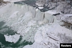 Через сильні морози на кордоні США і Канади частково замерз Ніагарський водоспад.
