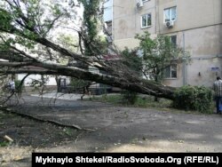 У пресслужбі мерії повідомили про 28 повалених дерев внаслідок сильної зливи та вітру.