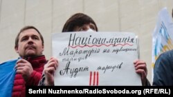 Акція відбувалася перед парканом ОПУ, адже безпосередньо на площу перед будівлею мітингувальників не пустили через карантин.